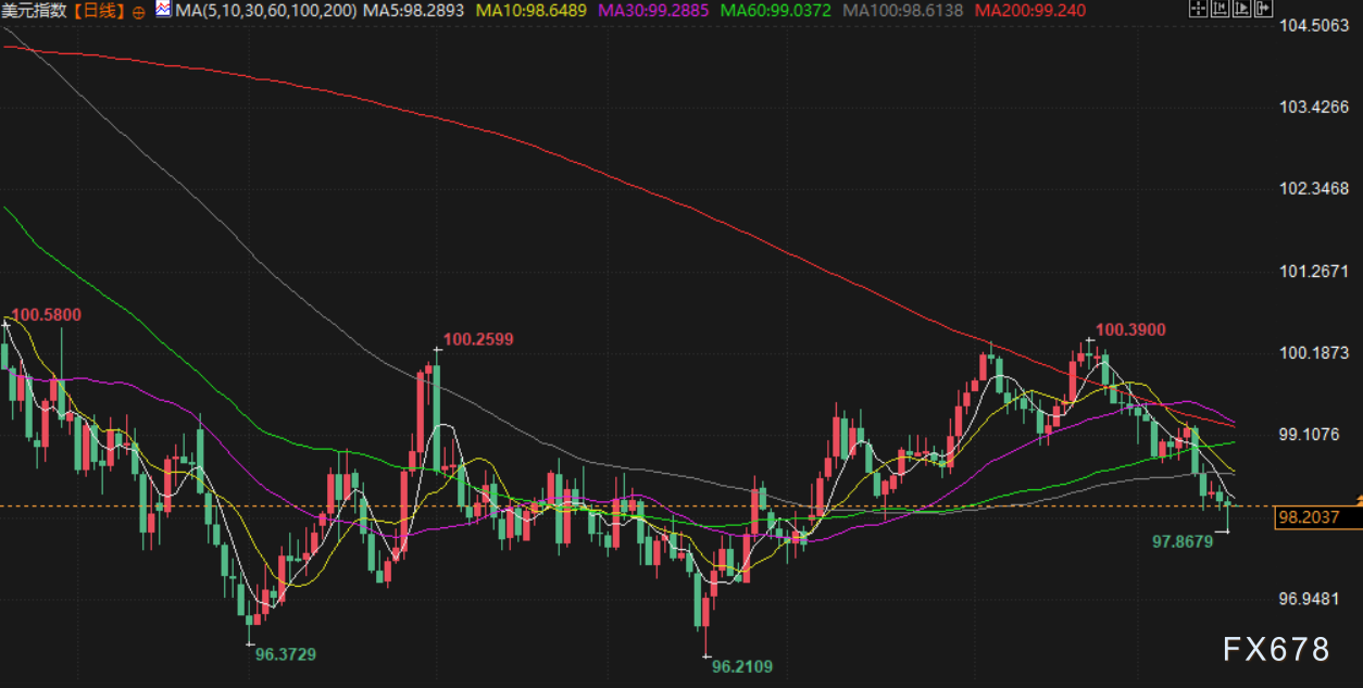 具体数据显示,美国11月新增非农就业岗位6.4万个,优于市场预期。然而失业率从4.4%升至4.6%,加之新增岗位主要集中在医疗保健等非周期性行业,分析师认为报告内部分化,暗示经济周期性动能仍然有限。美元指数下跌0.11%,报98.15,连续第二个交易日走低。
